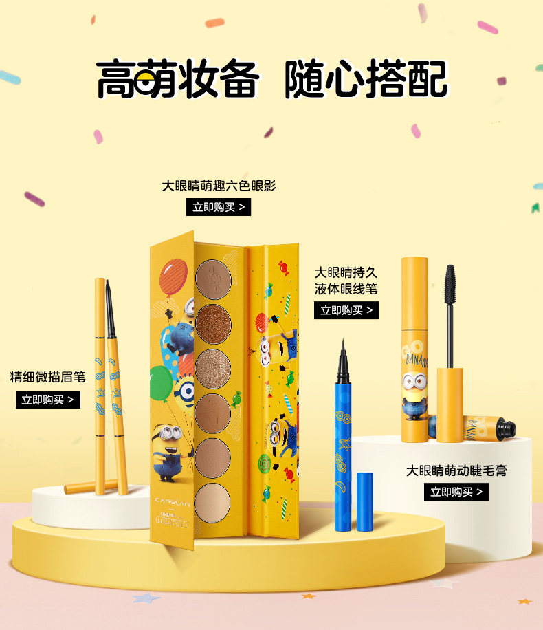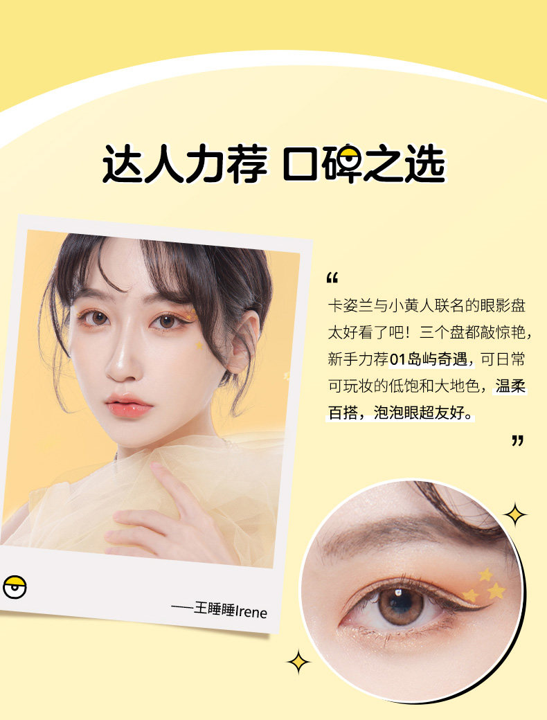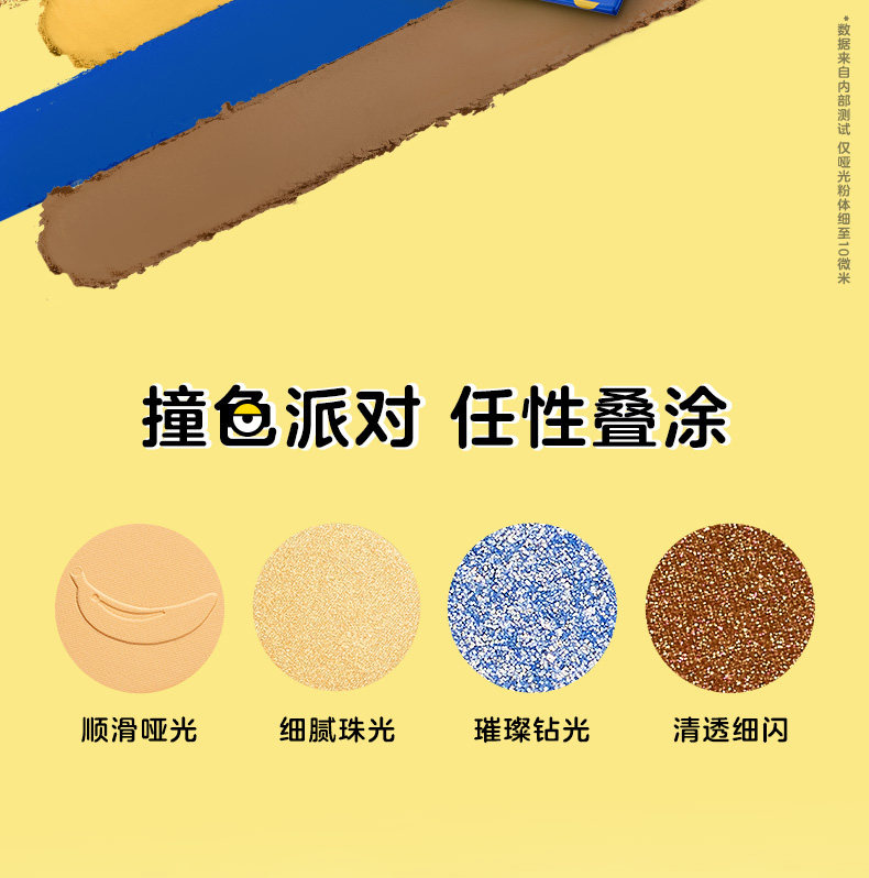 A 6-color eyeshadow palette contains matte, shimmer, glitter, pearl and dark colors for creating various makeup finish.