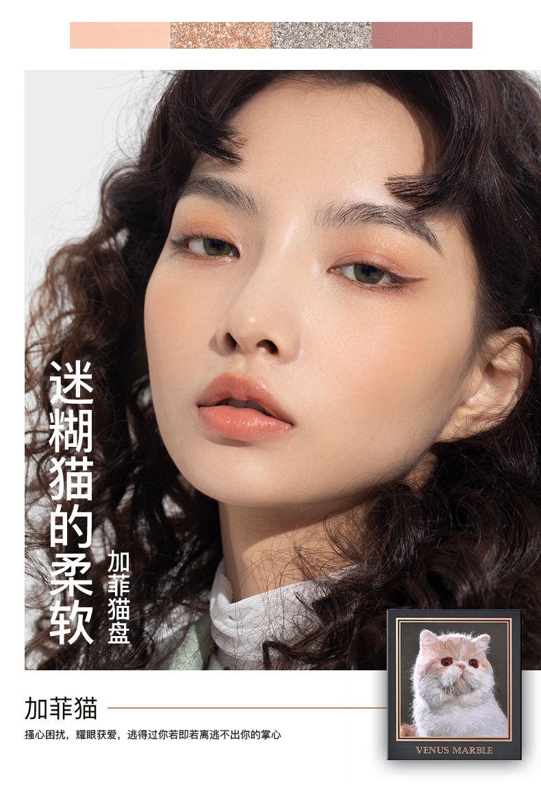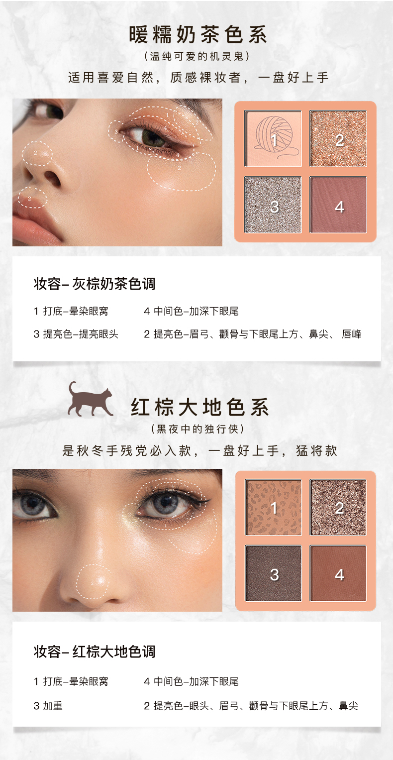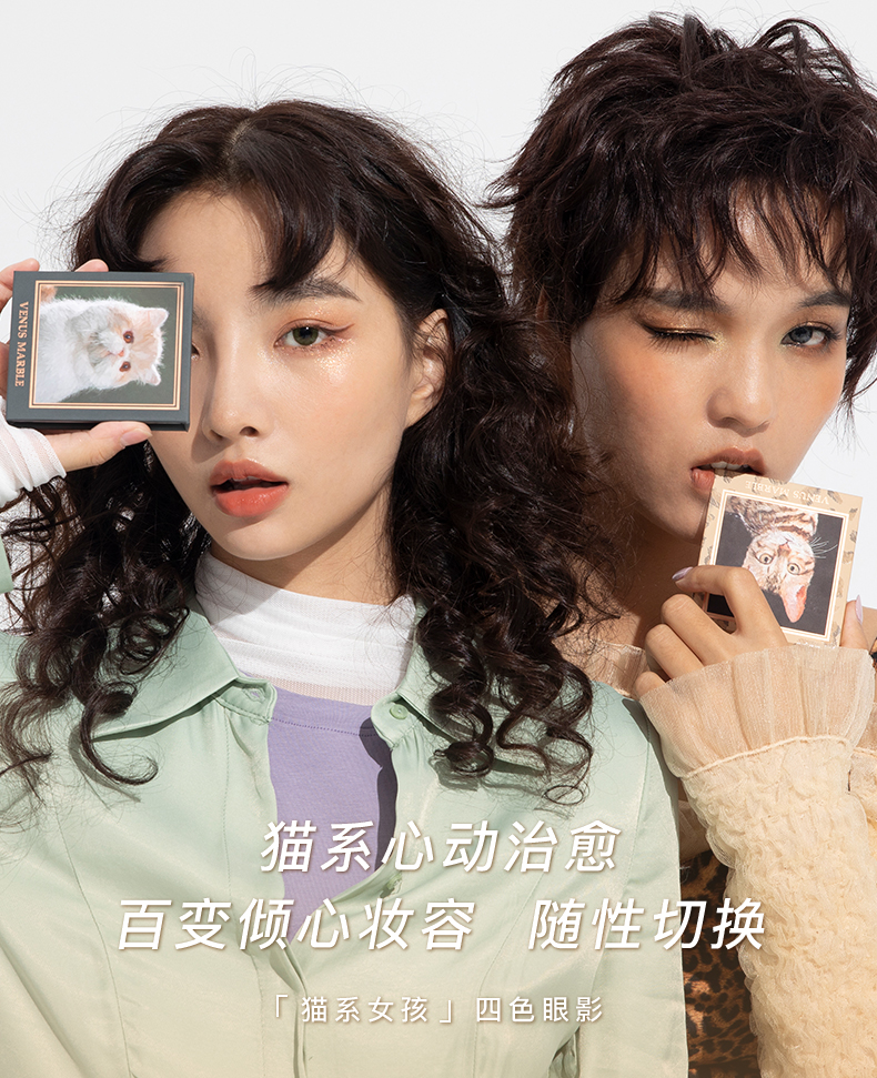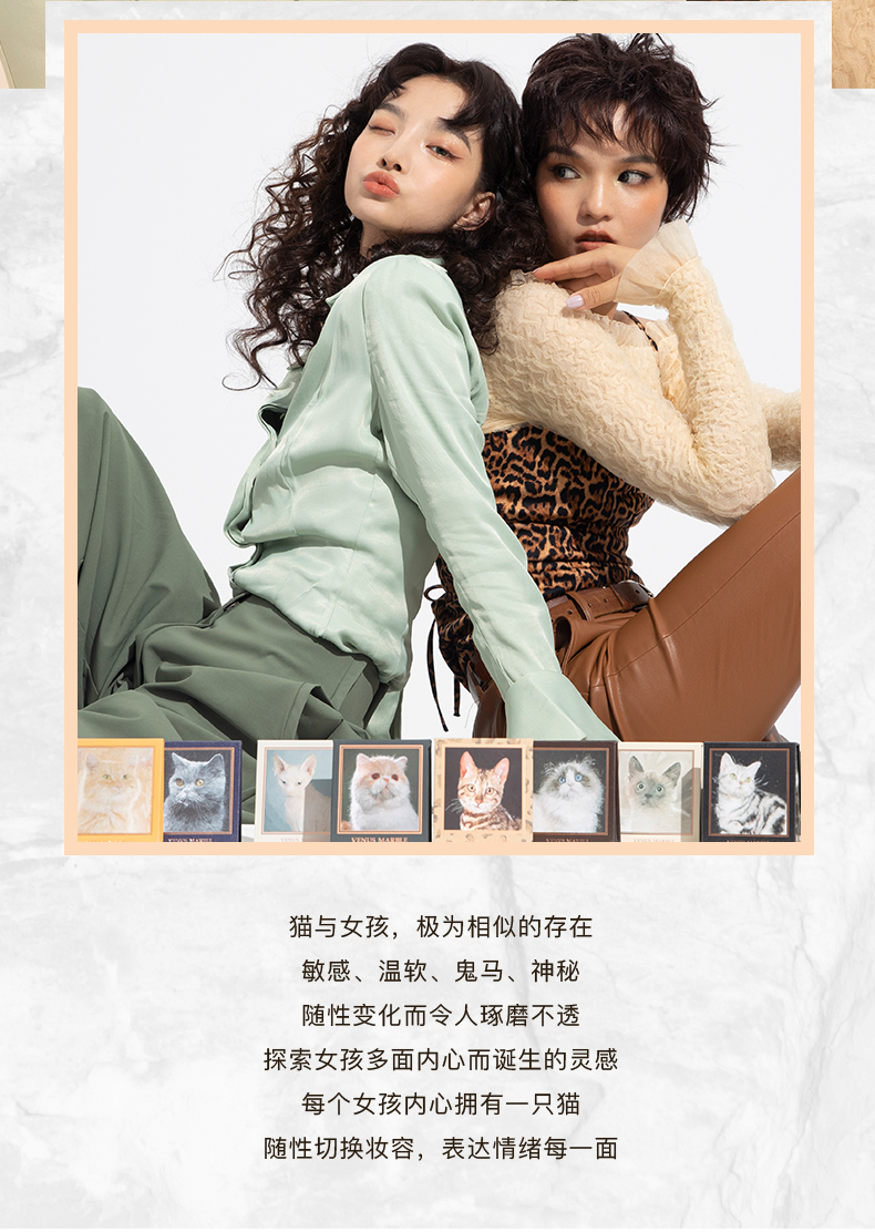 Packaged with a cute cat painting, the highly colored eyeshadow and lustrous glitter create a beautiful and captivating look.
